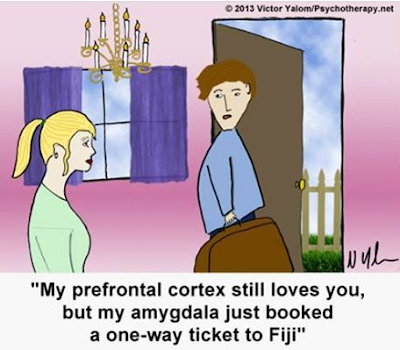 The amygdala is the organ in the brain that is the “fight or flight” self-protection system from danger. It alerts us to stress and wants to protect us. It serves as our instinctual center. The amygdala works so quickly, that is often serves us best to take a breath and observe our emotions as best we can. Then we can be assured we are moving intentionally on the right path.