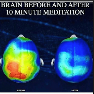 Not only will you notice a difference in your mood and focus, but your brain will actually change. Check out the brain scans below. Meditation wakes up more parts of the brain, connects both hemispheres, and leads to a better, more balanced, functioning system. The parts of the brain that are more active in a meditating brain have shown to improve self-regulation, reduce stress and fear responses, and improve memory. Meditation can significantly change the brain wave patterns within 15 minutes. And while this is an image of a brain during meditation, researchers also found that the benefits of meditation can lead to more permanent changes in the brain, actually restructuring your brain! For more info on this, click here.