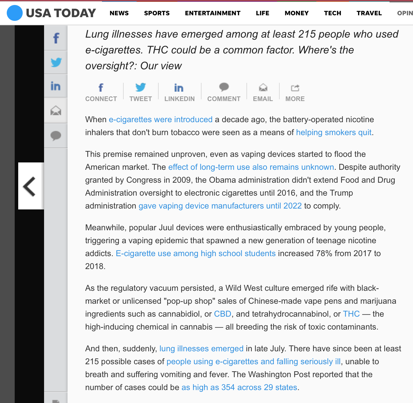 Lung illnesses increasing according to this recent USA Today and Time Magazine articles. It seems, Vaping is causing more damage and even deaths. If you believe Vaping is less dangerous that smoking, perhaps you need to reconsider. Vaping is an addiction with very powerful consequences. Can you get lung disease from vaping? These aldehydes can cause lung disease, as well as cardiovascular (heart) disease. E-cigarettes also contain acrolein, a herbicide primarily used to kill weeds. It can cause acute lung injury and COPD and may cause asthma and lung cancer.May 21, 2019Truth Initiative.org/ Click on the blue link to go to the site for more information on Juul.